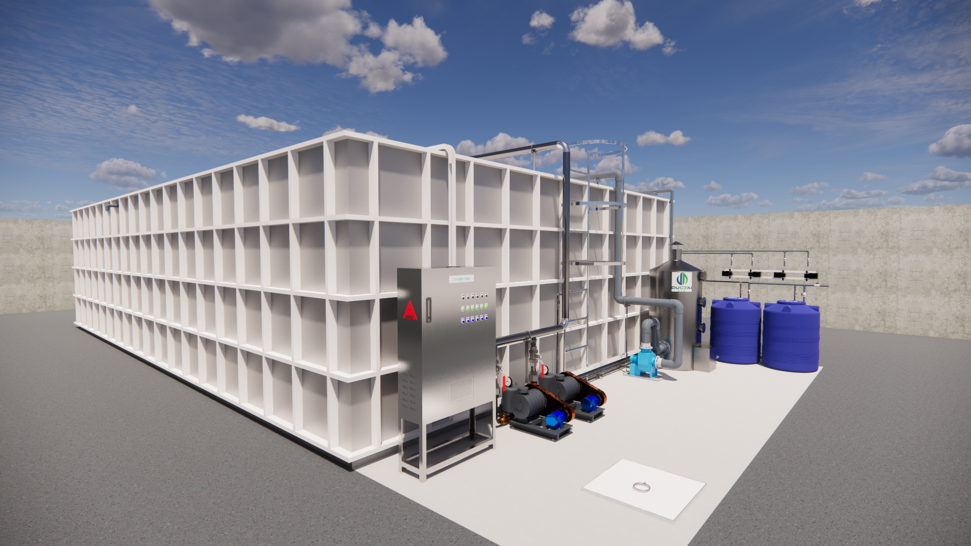 - Nhân công: ứng dụng IoT – SCADA giám sát COD, pH, SS, lưu lượng 24/7.