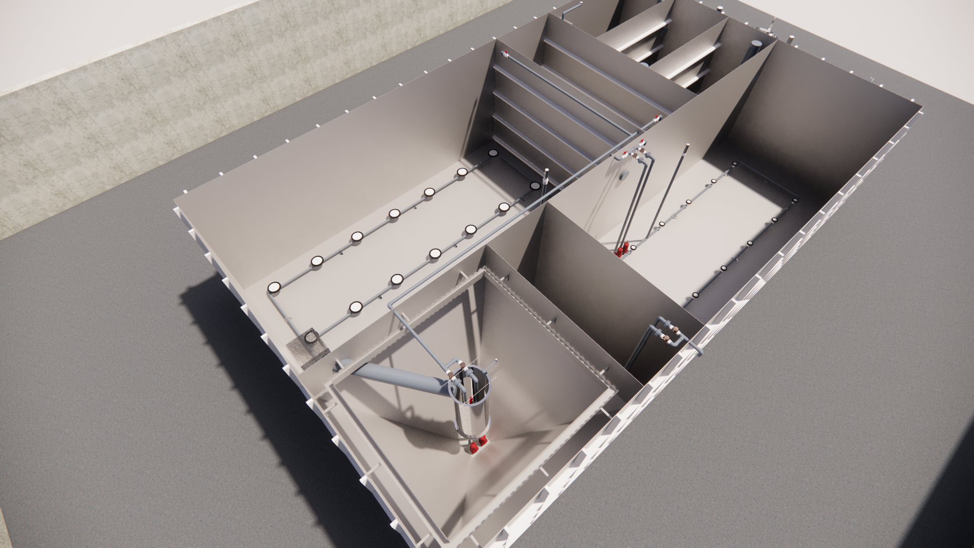 - Sau sinh học, nước thải được đưa qua bể lắng sinh học (clarifier) để tách bùn hoạt tính ra khỏi nước trong.